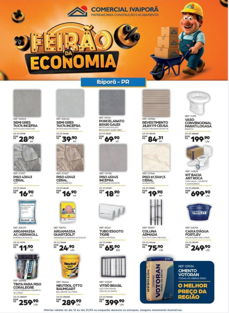 “Além da qualidade dos produtos, os preços são muito bons. Para quem trabalha com construção, isso pesa bastante. Por isso sempre indico a Comercial Ivaiporã”, afirma.
