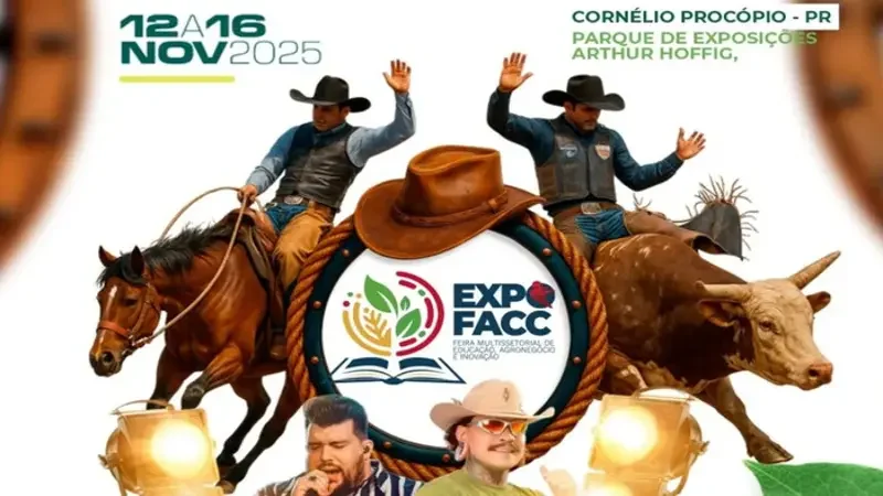 Começa nesta quarta-feira (12) e prossegue até o próximo dia 16, a EXPOFACC 2025 – Feira Multissetorial de Educação, Agronegócio e Inovação, em Cornélio Procópio (Norte Pioneiro). O evento vai reunir reunir negócios, conhecimento e grandes atrações culturais em uma das maiores edições já realizadas.