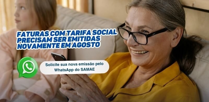 A falha no sistema de faturamento já está sendo corrigida e o SAMAE reforça que os beneficiários da tarifa social não precisam pagar o valor atual da fatura. O erro ocorreu decorrente de uma migração no sistema comercial. A orientação é de que os moradores beneficiados com a tarifa social procurem a autarquia preferencialmente por WhatsApp para comunicar o erro e solicitar a reemissão do boleto. Também é possível realizar contato por telefone ou presencialmente.