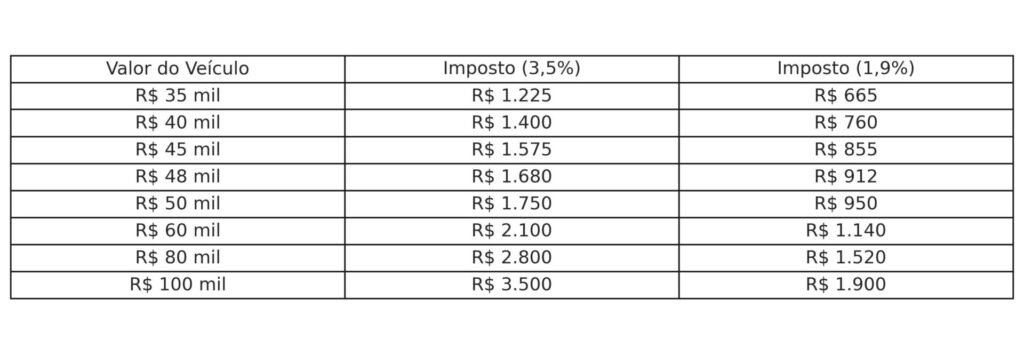 A medida não altera a alíquota de veículos com valores diferenciados. Assim, ônibus, caminhões, veículos de aluguel, utilitários de carga ou movidos a gás natural veicular (GNV) seguem tributados em 1%.