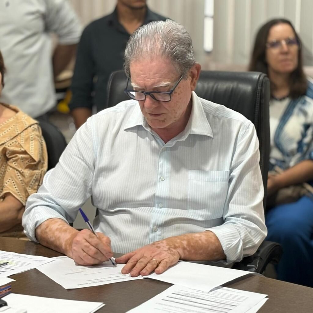 A solenidade de assinatura ocorreu no gabinete do chefe do Poder Executivo.