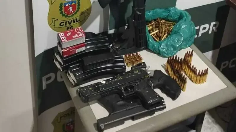 A PCPR (Polícia Civil do Paraná) apreendeu um fuzil, uma pistola, um revólver e mais de 140 munições durante o cumprimento de mandados de busca e apreensão em endereços ligados a um empresário investigado por ameaças armadas em Ibiporã. As buscas ocorreram na tarde desta segunda-feira (17), em um apartamento e em uma empresa pertencentes ao suspeito, ambos localizados em Cambé.