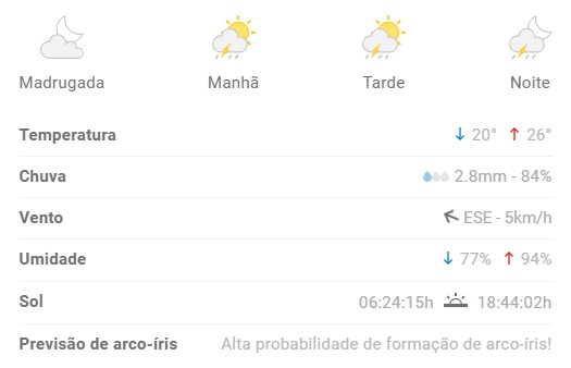 Hoje será parecido com ontem: Sol com muitas nuvens e pancadas de chuva à tarde. À noite ocorre temporal.
