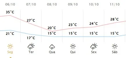 Ibiporã inicia a semana já com chuvas, que devem derrubar as temperaturas. Segundo o Simepar (Sistema de Tecnologia e Monitoramento Ambiental do Paraná), a máxima não passará dos 28°C e as mínimas devem chegar aos 15°C.