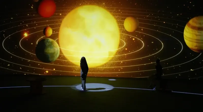 Além da exibição principal no atelier, com projeções enormes, a experiência conta também com ambientes interativos dedicados a temas como o telescópio James Webb, constelações, Estação Espacial Internacional e planetas, criando um espaço educativo e inspirador para todas as idades.